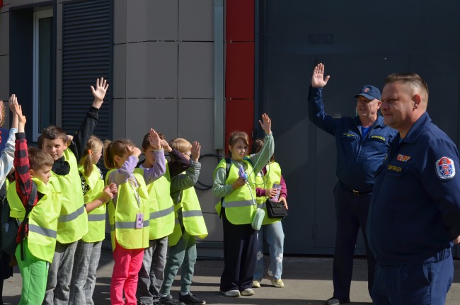 Маленьких посетителей встречает у ворот гаража начальник отряда Денис Смутин и дежурная смена. В гараже детям демонстрируют аварийно-спасательное оборудование и снаряжение, находящееся в пожарных машинах, поясняют, для чего и как оно применяется. Школьники узнают, какие средства пожаротушения используются для ликвидации возгорания, а с помощью каких инструментов проводятся аварийно-спасательные работы. Во время экскурсии огнеборцы объясняют, как важно своевременно обратиться в пожарную охрану за помощью, примерами из собственной практики иллюстрируют серьезность опасности небрежного обращения с электроприборами, газовыми плитами и источниками огня.