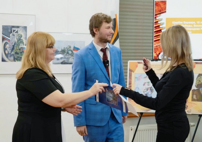 На площадке учреждения развернули экспозицию лучших художественных работ юных авторов. Каждому из них вручили дипломы и памятные подарки. Представление участников и их произведений провёл заведующий библиотекой Владимир Головачёв.