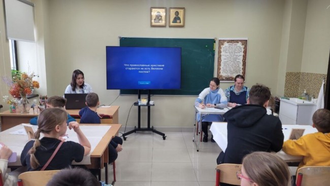 В ходе «Сретенских игр» ребятам предложили разнообразные вопросы на православную тематику. Такие викторины позволяют не только проверить уровень знаний, полученных в процессе обучения, но и оценить развитие личностных качеств: сплочённости, взаимовыручки, умения работать в команде.